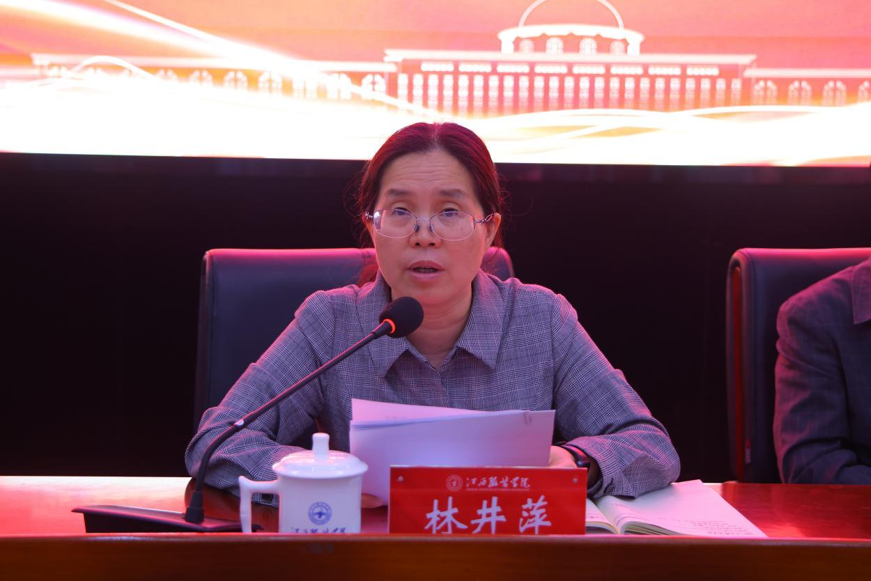 为深入贯彻落实党中央关于全面从严治党的要求,扎实推进学校党风廉政建设和反腐败工作,进一步增强党员干部廉洁自律意识,4月30日上午,我校在行政楼一楼报告厅召开 2025 年全面从严治党工作会议。校党委书记、督导专员林井萍出席会议并讲话。会议传达学习了习近平总书记在二十届中央纪委四次全会上的重要讲话精神、江西省纪委十五次全会精神和江西省教育系统全面从严治党工作会议精神。