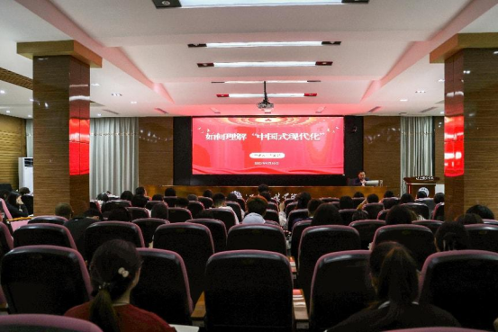 4月16日,校党委委员、党委宣传部部长沈新建以《如何理解“中国式现代化”》为题,从为什么要走中国式现代化发展道路,中国式现代化的历史演进、具体实践、鲜明特色,中国式现代化创造了人类文明新形态五个方面进行阐述。他讲到中国式现代化是人口规模巨大的现代化、是全体人民共同富裕的现代化、是物质文明和精神文明相协调的现代化、是人与自然和谐共生的现代化、是走和平发展道路的现代化。他强调新征程上,我们党的中心任务是“以中国式现代化全面推进中华民族伟大复兴”。