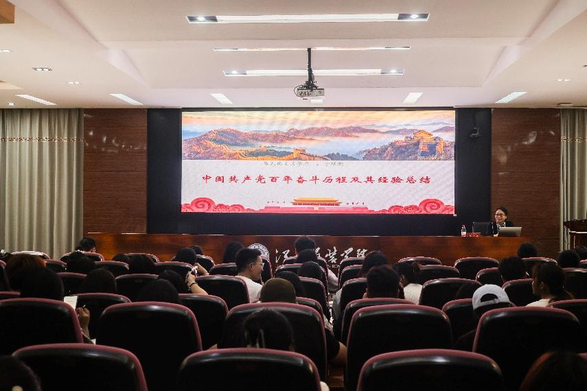 4月17日,马克思主义学院于延晓教授以《中国共产党百年奋斗历程及其经验总结》为题,从中国共产党百年奋斗历程及历史意义和历史经验两个维度展开了深入讲解。以四个历史时期,对中国共产党百年辉煌历史进行了梳理;用十个坚持,对党的百年奋斗的历史经验进行总结。历史在人民的探索和奋斗中造就了中国共产党,中国共产党团结和带领人民创造了历史的辉煌。她强调“看历史,就会看到前途”,要学习重温中国共产党百年历史,明理、增信、崇德、力行,不忘初心、牢记使命、永远奋斗,谱写壮美华章。