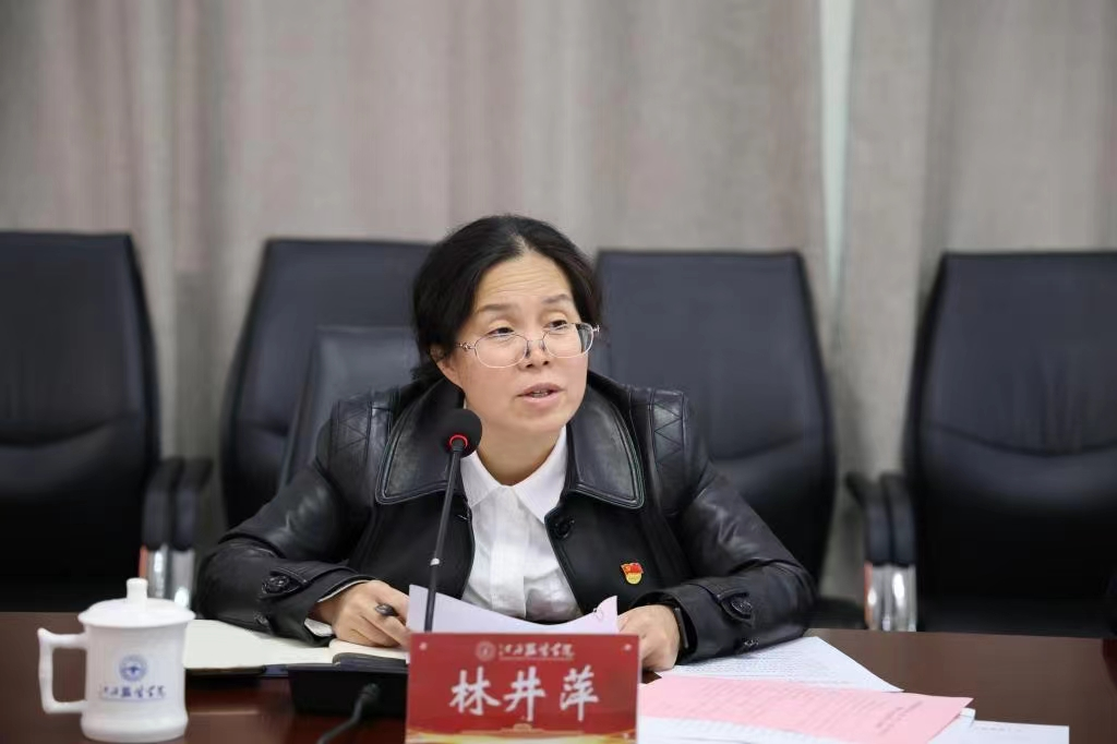 林井萍指出,要认真学习贯彻全省教育大会精神,一是提高政治站位,增强大局观念。全校上下要切实把思想和行动统一到全省教育大会精神上来。把学习贯彻大会精神与学习贯彻党的二十届三中全会精神结合起来,与学校中心任务相结合,推动大会精神落实落地、见行见效。二是强化使命担当,抓好贯彻落实。全校上下要层层传达学习全省教育大会精神,迅速掀起学习贯彻热潮,通过多种形式学习大会精神,实现全员、全覆盖学习。以党建品牌建设为突破口全面提升关键质量,关心师生身心健康,不断提升学校安全管理水平,确保学校和谐安全稳定。不断加强和改进思想政治教育,加强师德师风建设,以党建品牌建设为突破口全面提升关键质量,关心师生身心健康,不断提升学校安全管理水平,确保学校和谐安全稳定。三是增强责任意识,深化改革举措。以审核评估和硕士点申报等重点工作为抓手,全面检视排查教育教学方面的短板弱项,对照各项指标,查漏补缺,持续改进,将各项迎评工作落到实处。要增强责任意识,勇于担当,高标准完成审核评估等各项工作,加快推动江服发展提质增效新征程,切实打牢学校高质量发展的坚实基础。