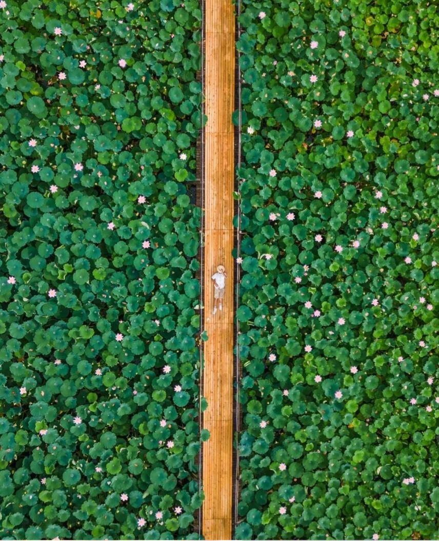 观察水中游动的鱼,联想到池塘里亦盛开荷花。将荷花用线的形式进行抽象化处理,并采用多种颜色表现荷花参差错落、遍布荷塘的画面。此静态画面与鱼的动态相结合,整体富有活力和生机。采用宋锦工艺,体现色彩分明、图案错落的视觉效果。