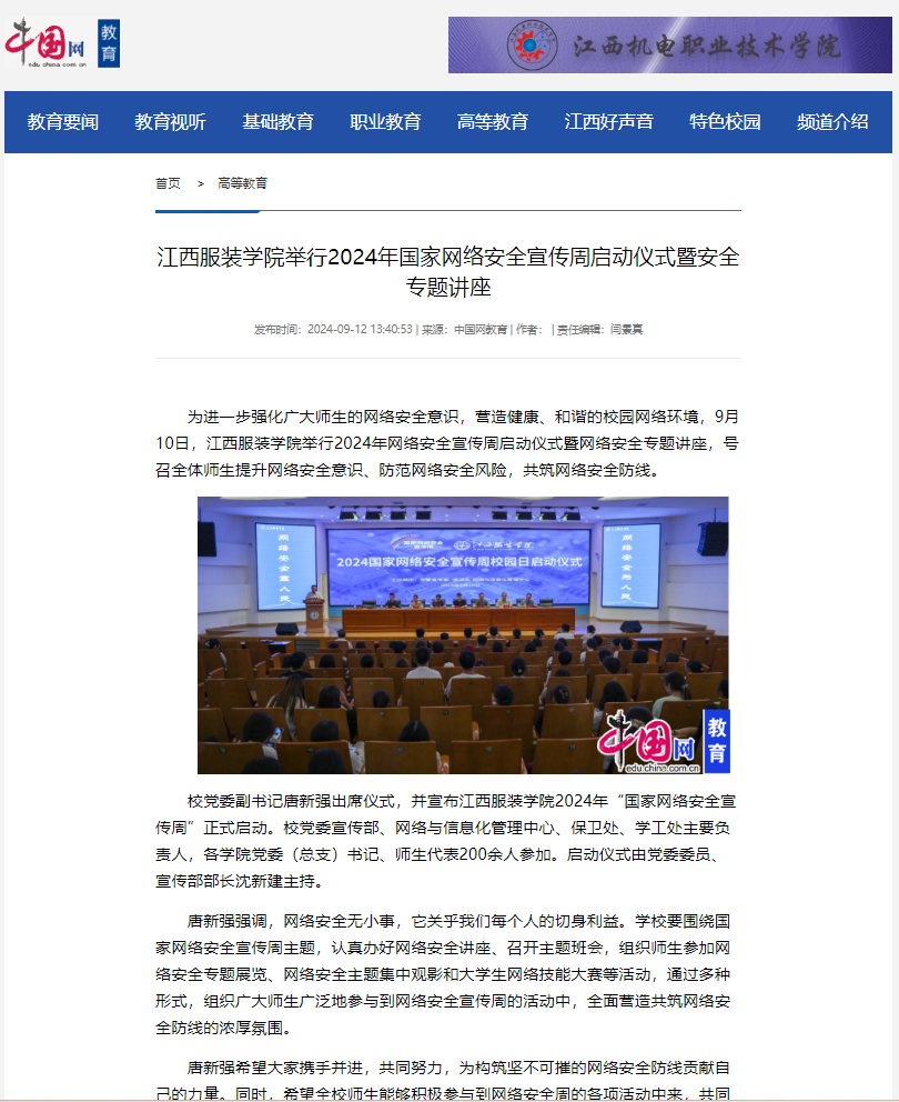 中国网:江西服装学院举行2024年国家网络安全宣传周启动仪式暨安全专题讲座