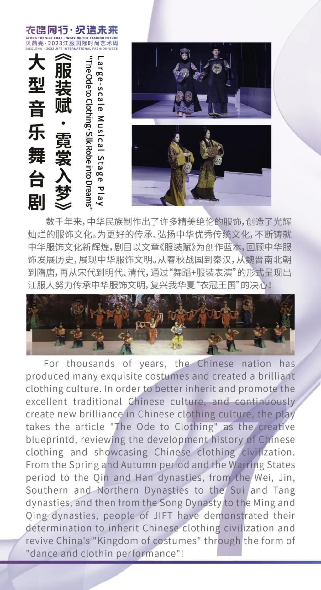 本次由江西服装学院潜心创作的大型原创音乐舞台剧《服装赋·霓裳入梦》采用音乐、舞蹈、服饰走秀等多种形式,带领我们一起穿越时空,在华美服章间,回顾泱泱华夏之美,在缓歌慢舞中,共同领略中华服饰文化的博大精深。