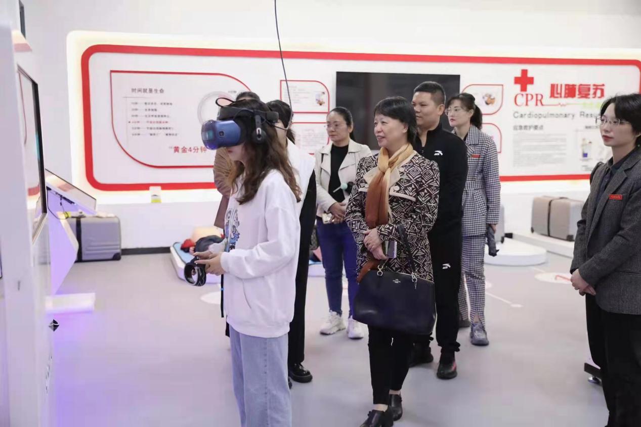 甘应进副校长一行还实地参观考察了红十字生命安全健康教育体验馆、留学生宿舍、大学生思想政治教育基地。