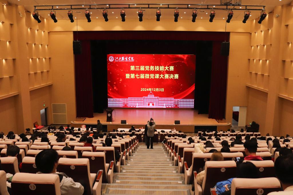本次赛事分为党务技能大赛以案说理组和实务操作组,微党课大赛分为教师组和学生组。经过初赛,共有23支参赛队伍(个人)晋级决赛,逐一展现各自的党务技能和党课风采。比赛现场,党务技能大赛参赛选手们结合支部实际谈工作经验,用鲜活的实例、生动的语言,介绍了学院党建工作与中心工作深度融合,加强党建品牌建设的成效。微党课选手们通过“小切口”阐述“大道理”,展示了江服师生党员积极向上的精神风貌,也为现场观众带来了一场接地气、有温度、有深度的党课。