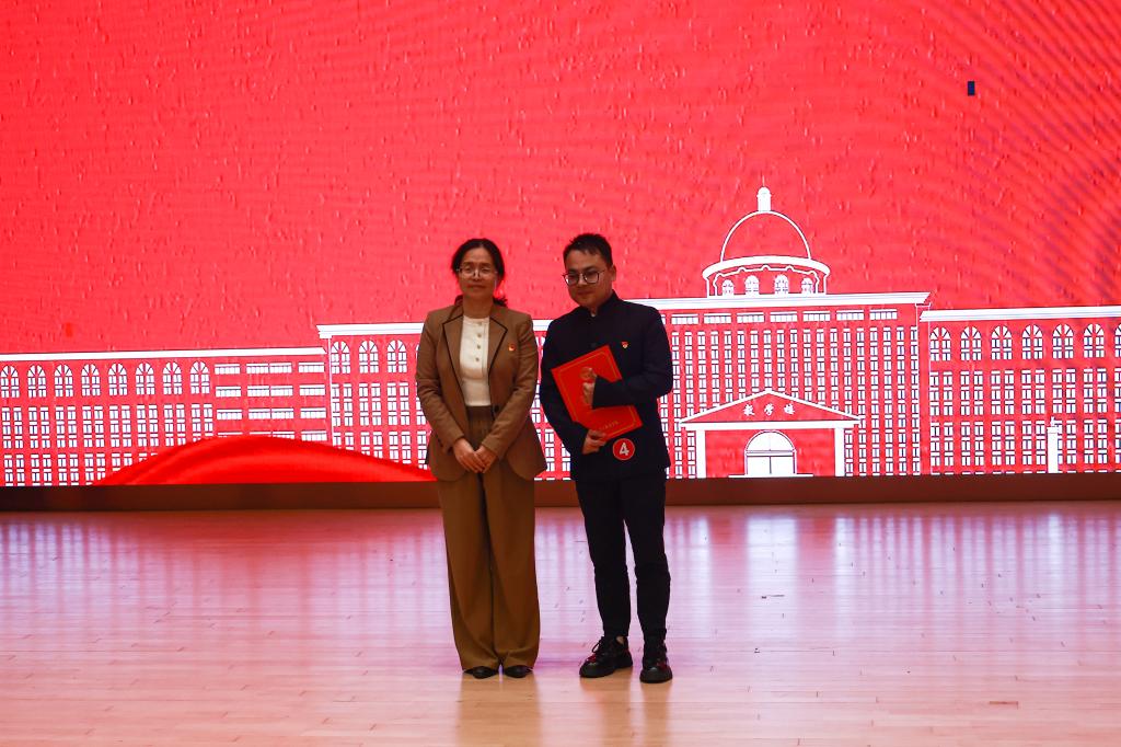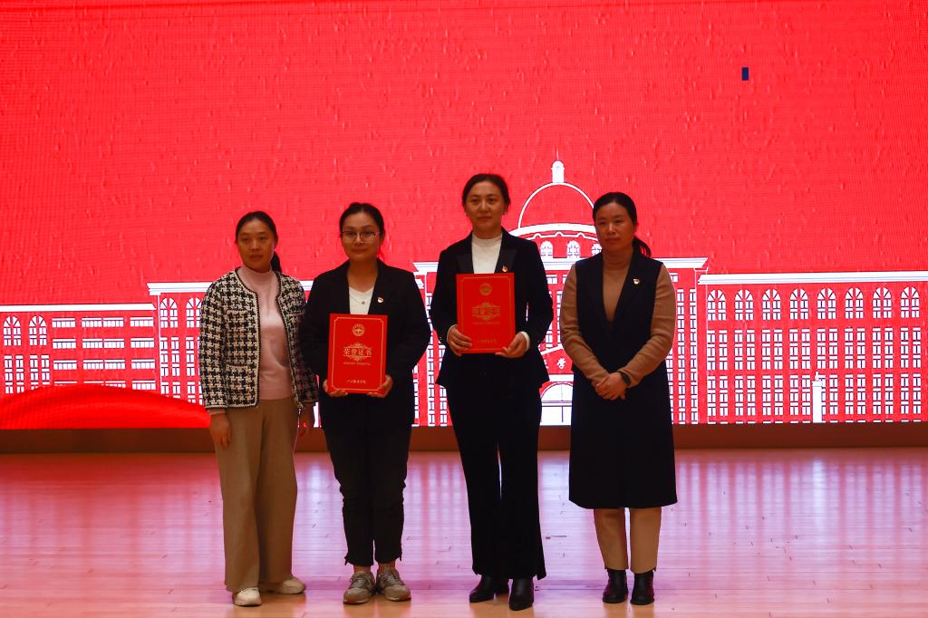 校党委书记林井萍为获奖单位颁奖