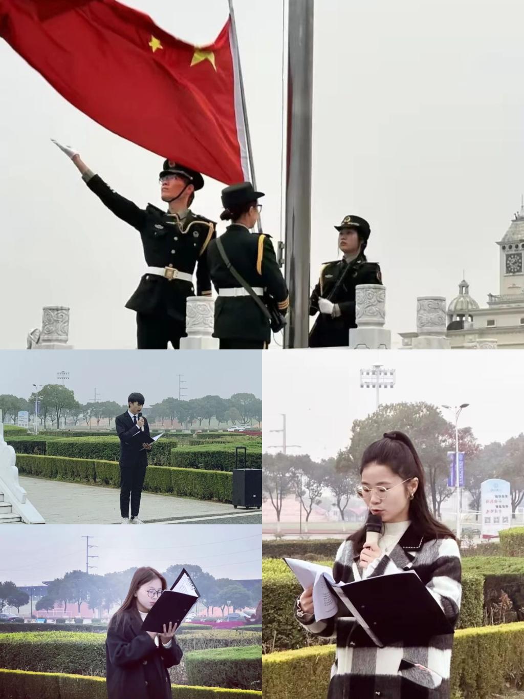 江西服装学院商学院于2023年12月4日早上7点在主教学楼前开展以“大力弘扬宪法精神,建设社会主义法治文化”主题教育升旗仪式。