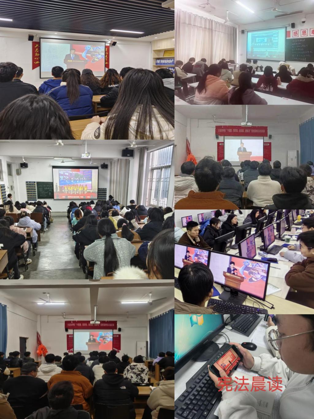 同时各学院组织当天有课的班级在课前集体进行宪法晨读通过教师领读、学生默读、班级齐读等方式学习宪法知识,领悟宪法力量,传承宪法文化,弘扬宪法精神。