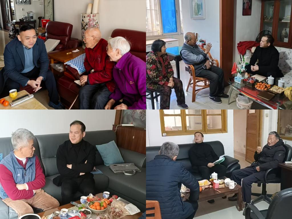 一句嘱托暖人心,登门拜访传爱心。校领导与各位老领导亲切交谈,促膝长谈,仔细询问他们的身体和生活情况,并介绍了学校2024年的事业发展情况和2025年的主要工作安排。两位校领导强调,离退休干部是学校发展历程中的宝贵财富和重要力量,他们的辛勤付出与无私贡献为学校取得各项成绩奠定了坚实的基础,学校将一如既往地大力弘扬老一辈的光荣传统和优良作风,接续奋斗、久久为功,朝着建设特色鲜明的高水平应用型大学的办学目标不懈奋进。他们诚挚希望老领导们能够继续关心和支持学校的各项工作,为学校的发展建言献策,共同推动学校事业不断迈向新台阶。
