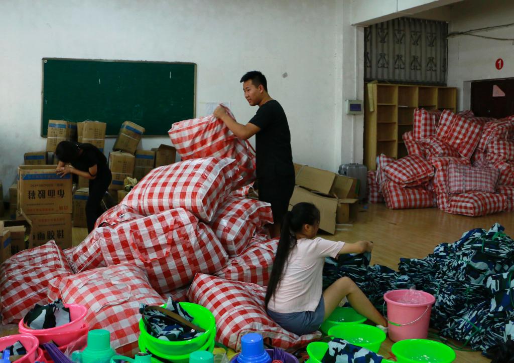 军训的衣服学姐坐在地上帮你装好了,宿舍的被褥学长也帮你整理好了,新同学们要用到的东西都一一按要求和数量安排上了,你们来提上东西就能回宿舍了。军训的时候不要偷懒,莫要辜负学长学姐的心意。