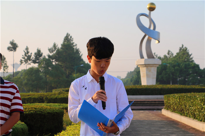来自2017级产品设计1班新同学杜嘉一作为学生代表发言。他说,时隔86年后的今天,我们仍不能忘记国家遭受的苦难、先辈经历过的伤痛,因为那是一个国家的记忆,是一个民族的凝聚力,我们要居安思危,痛定思痛,这样才不会重蹈历史的覆辙。我们作为新时代的大学生要做到:第一了解历史,培养民族荣誉感。沿着革命先烈的足迹,学习他们的心怀祖国的强烈的民族责任感。第二学习并继续继承中华传统美德。学习和感悟历史积淀下的优秀文化,做一个德才兼备的人。第三博学志远,学以致用。将所学知识用于实践,增强自己的社会责任感。