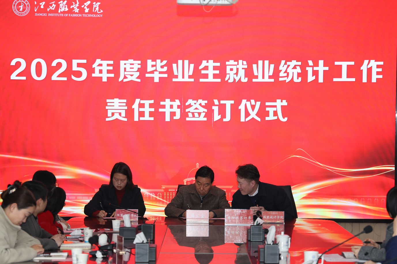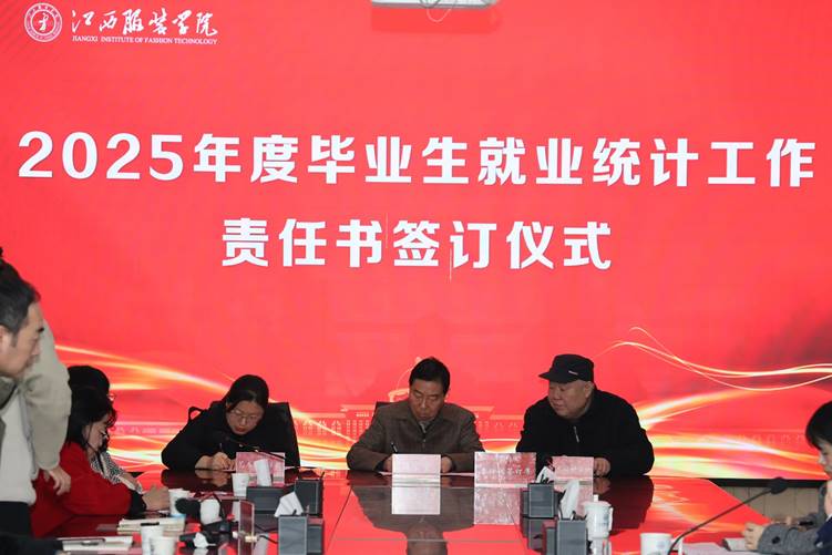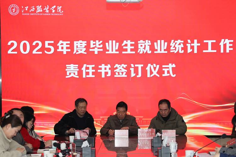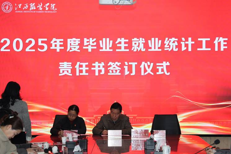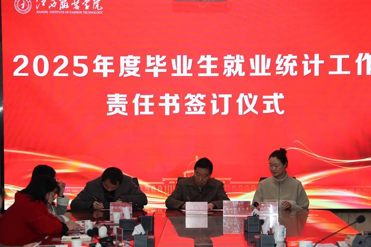 随后,举行了《江西服装学院2025届毕业生就业统计工作责任书》签订仪式。校长薛家宝与各二级学院党政负责人签订了责任书。责任书的签订,不仅体现了各学院党政领导的责任担当,也是学校对毕业生就业工作高度重视的体现。通过签订责任书,进一步明确了各学院在就业工作中的职责和任务,增强了责任感和使命感。