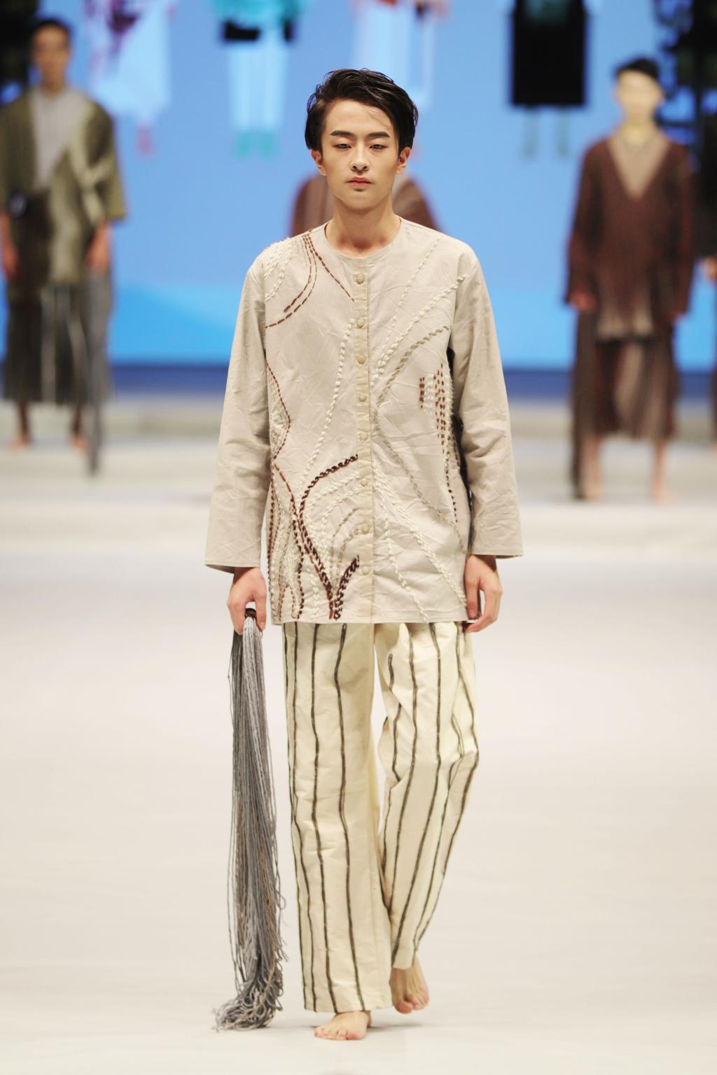 本届大赛以“天人合一”为主题,意在表达人与自然的和谐共处,人类生生不息、前仆后继,与天地万物共同存在、互相尊重、和谐相处、共同发展。29个系列作品的设计师从设计稿到面料市场选购面料与辅料再经过打板裁剪、制作工艺、熨烫等复杂程序,耗时近半年最终得以进行展示。经过评委严格评选后,宋喜来、李恒川作品《假象》荣获金奖,何月《武侠》、余颖《云水。游》获得银奖,罗雅文《锦来衣序》、严宜舒《寻道》、孔佑珊《墨初》获得铜奖。作品《百鬼》《醉仙歌》《蓝靛》《火》《谜》《淳》《壮美锦衣》《The last spain》《素雅》《嫦娥》获优秀奖,《织植纸质》获最佳创意奖,《阿房宫》最佳市场潜力奖,《天人合一大道至简》获最佳工艺奖。汤伯岐、王羿、李薇、顾建议、姜绶祥、王智沛获优秀指导教师奖。