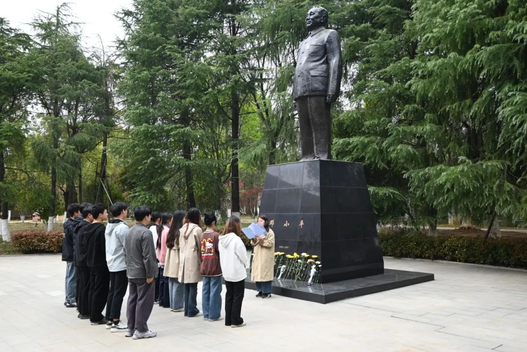 ●小平小道的改革回响:艺术设计学院、时尚传媒学院师生走进小平小道陈列馆,在邓小平同志雕像前鞠躬献花,通过珍贵的历史影像和文物展陈,感悟“解放思想、实事求是”的改革精神。时尚传媒学院志愿者还为过往游客免费提供鲜花,方便人们寄托哀思。