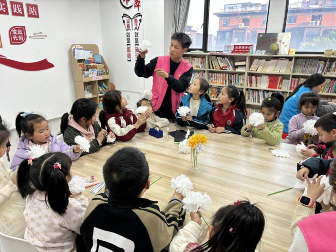 ●童心向党,文明传承:人文学院志愿者深入向塘镇社区,带领儿童制作小白花、讲述清明文化,以“大手牵小手”的方式播撒感恩与传承的种子,让红色基因在代际互动中生根发芽。