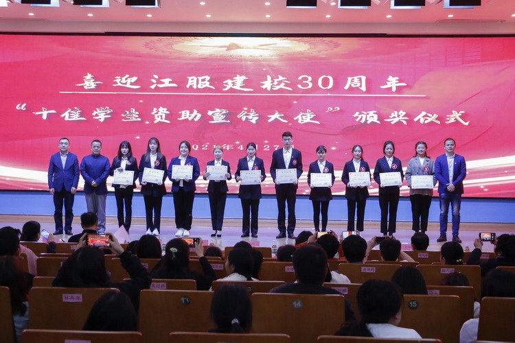活动现场,学工处处长邓良峰解读了《学生资助宣传大使职责》,他强调,学生资助宣传大使要切实履行做好资助政策宣传、讲好江服故事、做好励志引领的职责,让更多的人知道党和国家的资助政策。随后15位参赛选手逐一登台演讲,以感恩资助、筑梦成长为主线,讲述自己的受助经历、国家及学校资助政策以及在学校励志成长的过程。经过激烈的角逐,最终肖传胜等十位同学获得“十佳学生资助宣传大使”荣誉称号。