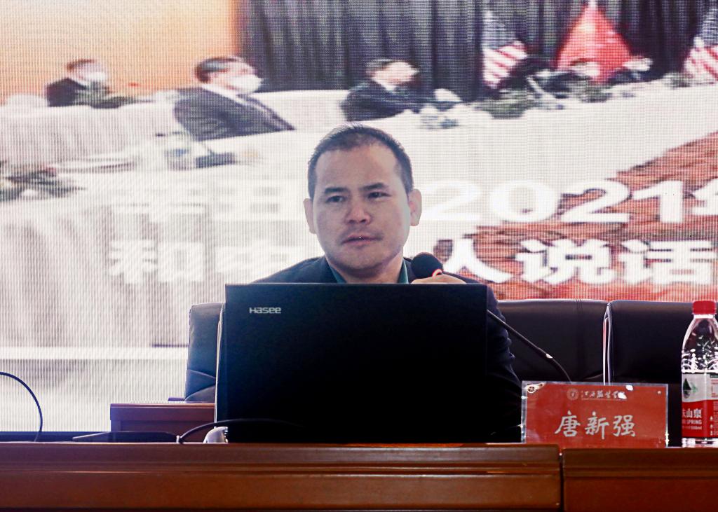 唐新强以一张“1901与2021两个辛丑年的对比”网络热图为引,讲述了120年前的辛丑年,腐朽没落的满清政府与美国等西方列强签订了丧权辱国的《辛丑条约》。同样是辛丑年的今天,在3月18日中美高层战略对话会议上,中方代表掷地有声:美国没有资格居高临下同中国说话。唐新强指出,同是辛丑年,两个甲子过去了,中国早已不是原来那个中国了。中国找到了适合自己的道路,也找回了属于中国的自信。
