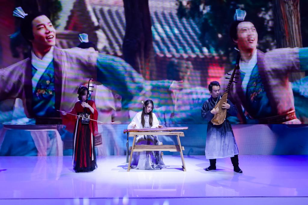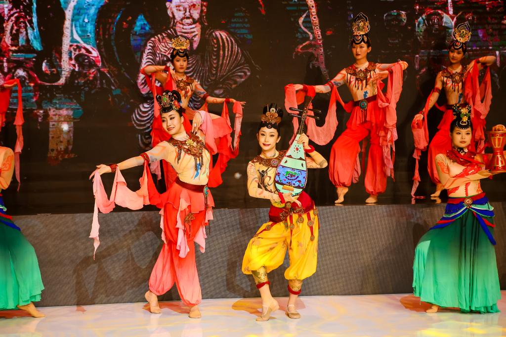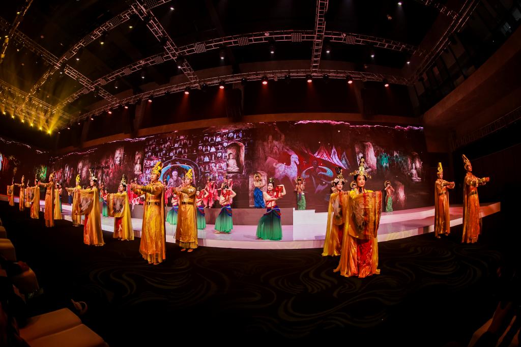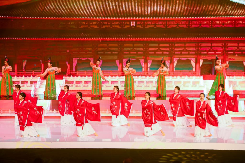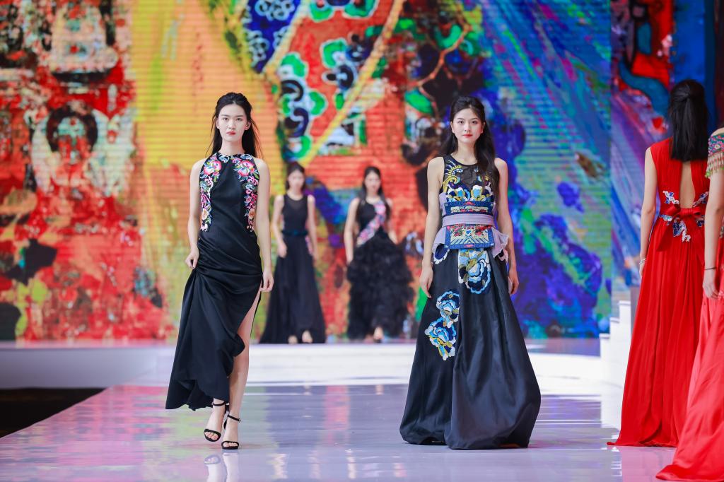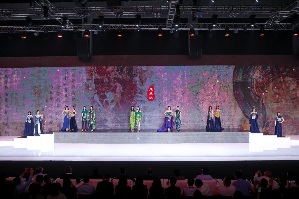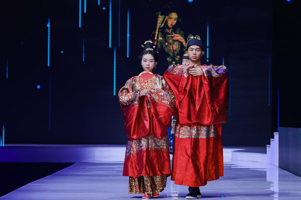 歌舞剧《服装赋》是由我校300余名师生历时一年潜心创作的一部展现中国传统服饰文化的绝世佳作,通过音乐、舞蹈等不同表现形式全面展示中国古典服饰的韵味与中华服饰文化的博大精深。2022在金顶奖服装设计师张肇达的指导和参与下《服装赋·华裳丝语》无论服装,还是舞美都得到了进一步的升华。《服装赋·华裳丝语》分为《千年之约》《重回汉唐》《丝路畅响》三个篇章,该剧展示两百余套涵盖汉、唐、元、明、清代的传统服饰,以及张肇达以“敦煌”“汉唐”为灵感来源创作设计的系列服装,在华美服章间,回顾泱泱华夏文明;在缓歌缦舞中,领略中华服饰文化的博大精深,完美诠释了中华服饰的文化精髓。