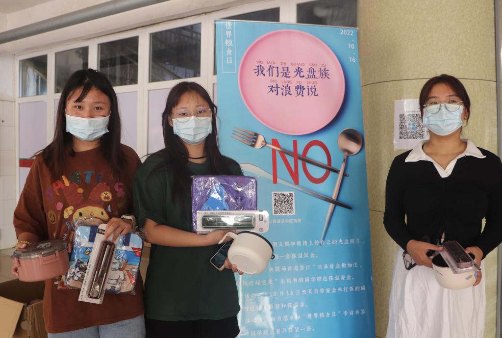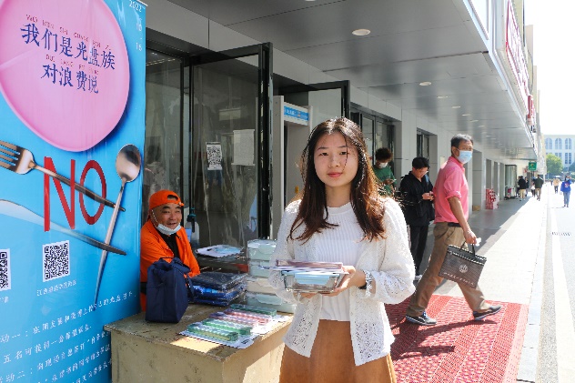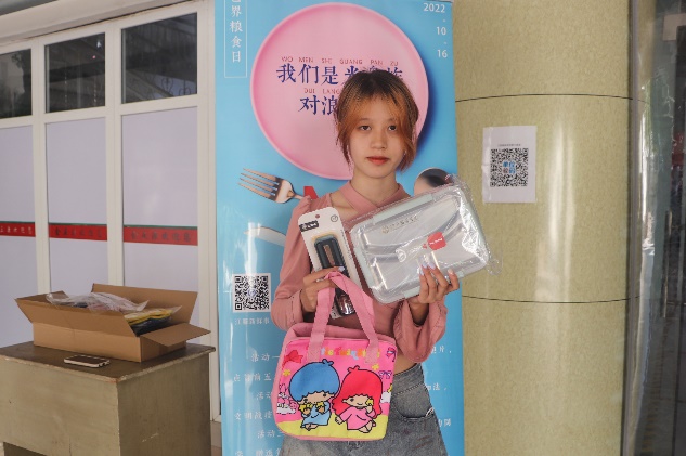 活动中,党委宣传部大学生记者团号召大家积极践行“光盘行动”,在朋友圈和微博上传自己光盘的照片,评论点赞累计超过50便可获得保温饭盒、便携餐具等精致奖品。同学们纷纷积极参与,现场气氛热烈踊跃。“这样的激励机制,有利于引导我们养成节约粮食的行为习惯,点赞!我们一起打饭的时候都会互相提醒,不要打太多,不能浪费,每次都要做到光盘。”拿着刚兑换来的饭盒的服装设计学院服设专业杜金晔同学告诉记者。