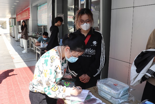 活动中,向自愿签订“自备餐盒做加法,文明战疫绿色化”承诺书的同学赠送保温餐盒,并对当天自带餐盒来打饭的同学,赠送餐具套装和保温袋。提倡绿色环保的生活方式,共同营造整洁美丽的校园,是在校大学生义不容辞的责任。活动中,同学们展现了当代大学生的责任与担当,携手争做自带餐盒、文明用餐的推动者与执行者。