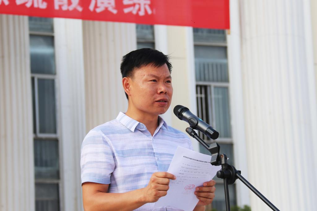 学工处处长张建荣作演练动员讲话,他希望全体人员要增强忧患意识,以饱满的精神、规范的动作,体验整个疏散过程,以获得经验;要高度重视演习中的安全。希望保卫处要在演习结束后及时总结,做好后续教育防范工作。他表示,这是我们学校近年来的一个常规训练项目,旨在通过这样的演练,让同学们学习和掌握地震、消防自救知识,增强预防地震、自然灾害和消防安全意识。