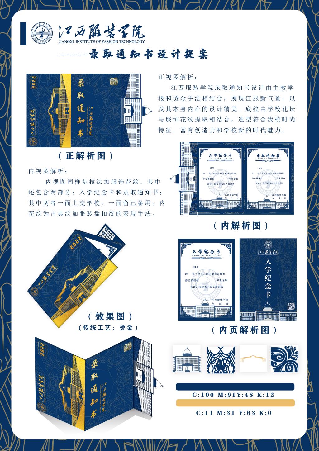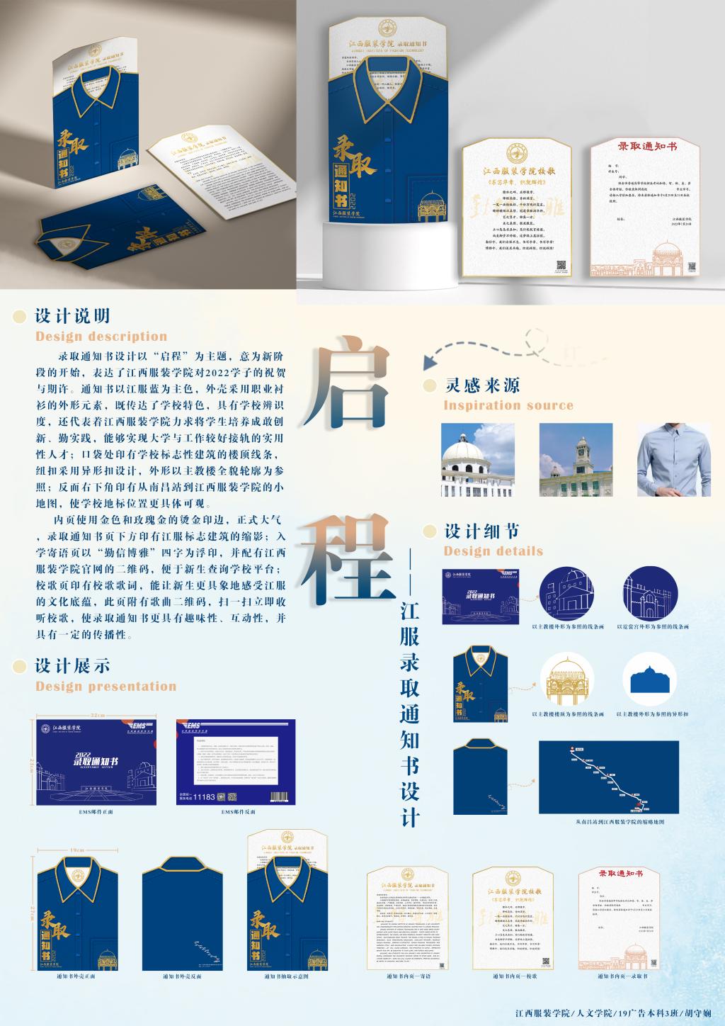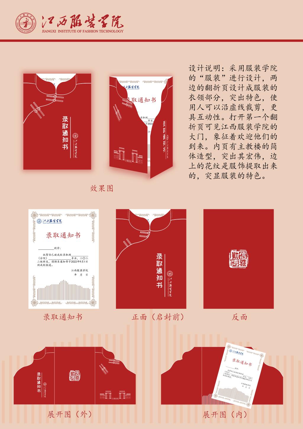 新闻中心讯(招生办公室 胡易)2022年3月至5月期间,江西服装学院举办了以“鼓励学生对江服元素时尚化表达,突出学校公益文化、红色文化、服饰文化三张牌理念”为主题的第二届文创产品设计大赛,本次大赛由招生办公室、党政办公室、艺术设计学院承办,党委宣传部、校团委协办。设计大赛面向全体在校学生征集校园文化创意产品,自4月份启动线上投稿以来共收到100余份文创作品,经过组织专家对作品进行严格评审和公示,共评选出新生录取通知书类一、二、三等奖四名;文创纪念品类一等奖一名、二等奖两名、三等奖三名和优秀奖十五名。