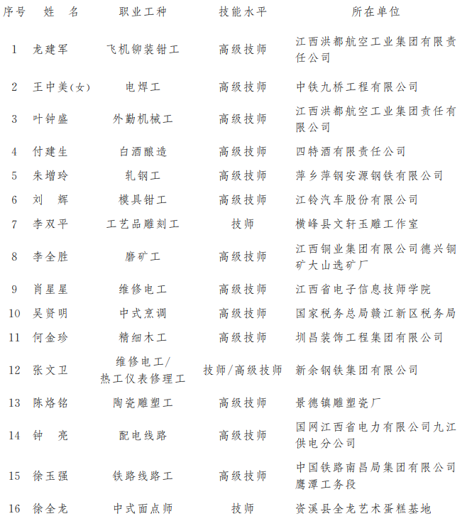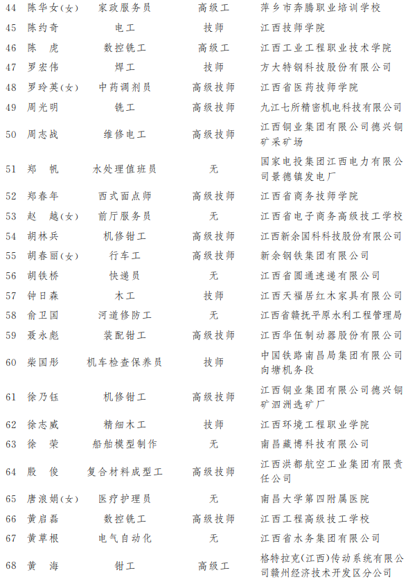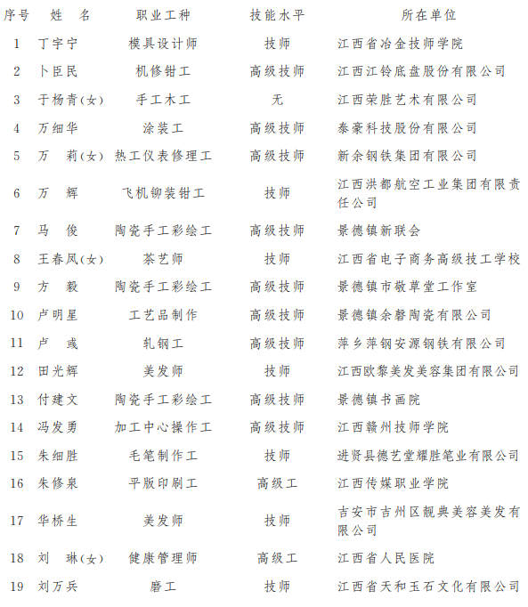 二、“江西省能工巧匠”(按笔画顺序排序,共80人)