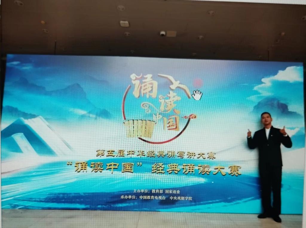 诵读大赛是该赛事的竞赛单元之一,从今年 3 月教育部发布比赛通知起,吸引了全国各地约 40 余万部作品参加,经过各地校赛、省赛、全国复赛后,入围全国决赛的作品数量为2000 部,比例约千分之 5,其中包含教师组作品 403 件。大赛组委会在教师组决赛作品中又遴选出 128 部作品入围全国总决赛,角逐一、二等奖。其中,耿渤添老师朗诵的作品《岳阳楼记》成功突围,成为入选全国总决赛的作品之一。