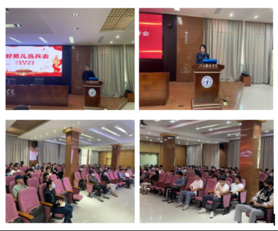 新闻中心讯(文/人民武装部 胡康 图/黄保值)在全校师生认真学习领悟党的二十大精神之际,我校青年学生在学中干,干中学,把思想转化为实际行动,希望用热血投身军营,为实现新时代强军目标贡献自己的青春力量。11月16日下午,我校在思贤楼三楼报告厅举办2023年征兵宣讲暨解答会。校党委副书记唐新强、校武装部部长鲍鹏、南昌县人民武装部王犹虎参谋、南昌县人民武装部游丽丽、 南昌县人民武装部罗晨颖、人民武装部全体人员,学院主要负责征兵工作辅导员及2023届本科毕业班男生代表近150人参加活动。