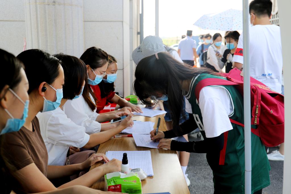 学生们进入校园后,来到自己学院的报到点,向辅导员报告自己在疫情期间的旅居和返校行程等情况,学习了解学校制定的疫情期间校园管理等各项规章制度,并办理寝室入住手续。