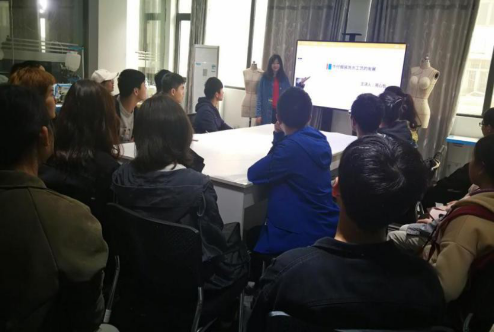 服装报讯(江西省现代服装工程技术研究中心供稿) 3月19日下午,江西省现代服装工程技术研究中心在798东五栋三楼会议室举办现代服装技术论坛。工程技术中心周心怡老师作了题为“牛仔服装洗水工艺的发展”专题讲座。
