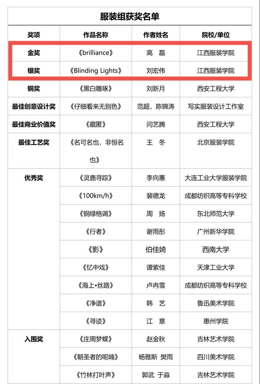 我校年轻教师高磊、刘宏伟创作的作品斩获金奖、银奖,这给予了积极参与服装设计与教学的年轻老师们极大的鼓励,体现了我校教师的专业实力。我校师生们纷纷表示,以后会更加努力专研于服装设计的创作,产生更多的优秀作品,争取获得更多大赛荣誉,为服装设计创新领域做出更大贡献。