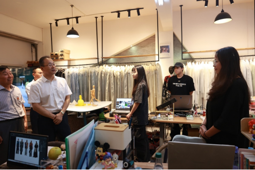 在服装数字化系统设计重点实验室,孙洪山向负责人张宁教授详细询问了产品研发、技术创新、科研成果转化等情况,并强调,要坚持以数字化转型助力服装产业高效发展。