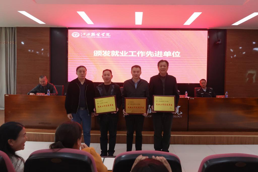 会上,唐新强通报了学校2022年度就业工作在南昌市就创中心年度考评中获评优秀等级情况,征兵工作在南昌市征兵办年度考评中获评南昌市征兵工作先进单位情况;并宣读《关于表彰2022年度就业工作先进单位和先进个人的决定》和《关于表彰2022年度征兵工作先进单位和先进个人的决定》。陈付龙为获奖单位和个人进行颁奖。