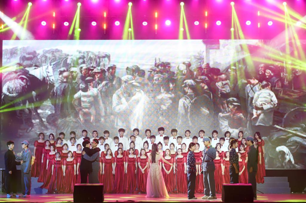 服装工程学院带来《我爱你中国》《如愿》,现场师生在歌声中回溯历史长河,感怀革命先烈从家乡出发,背井离乡,拿起长枪、走上战场,为人民幸福而战斗,为民族解放而斗争的伟岸英姿。