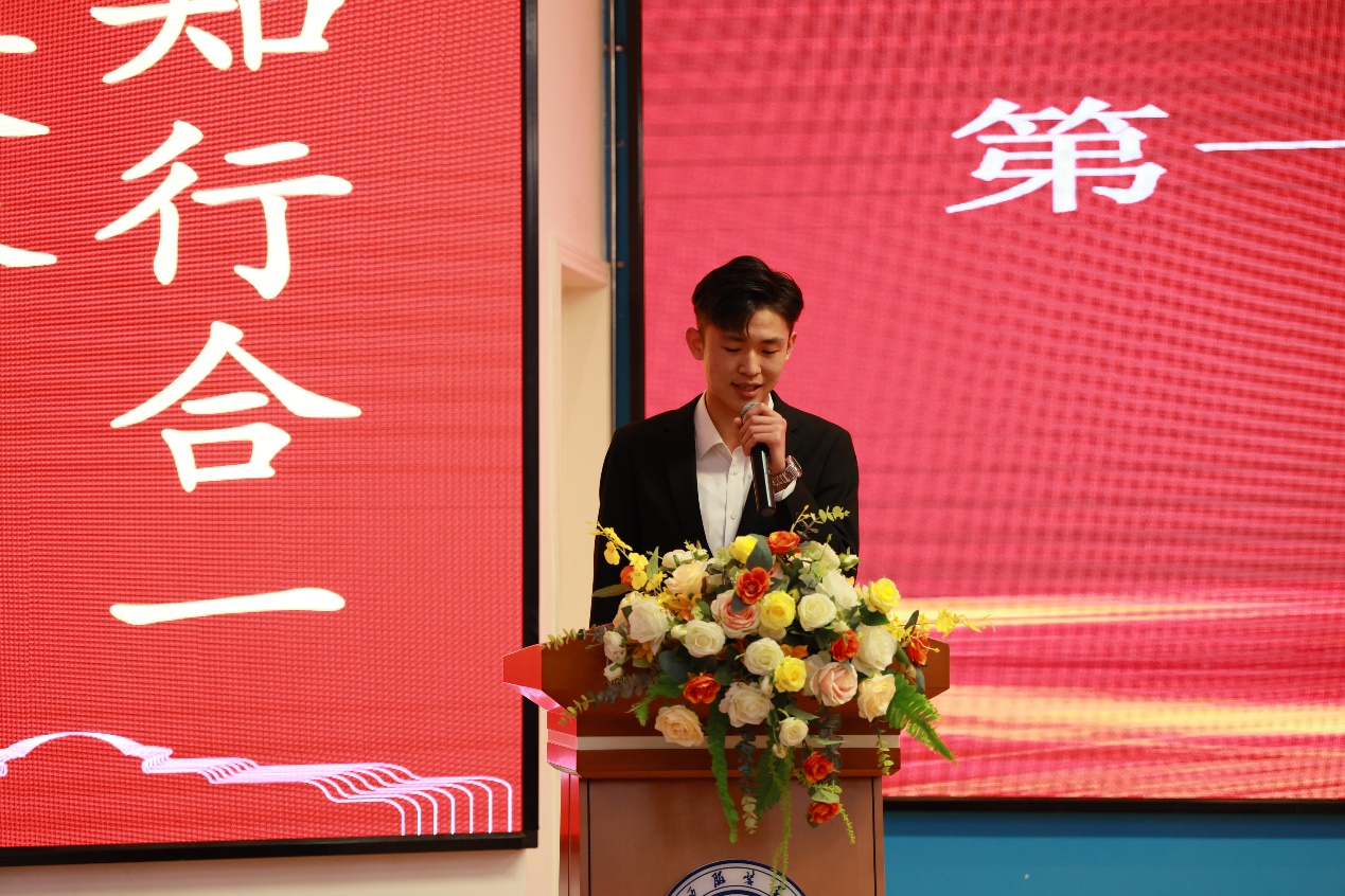 第一届班长联合会会长孟佳乐与大家分享了“学习二十大,启航新征程”——班长联合会专题培训班瑞金之行的心得体会,同时作了表态发言,他表示将坚定不移听党话、跟党走,怀抱梦想又脚踏实地,敢想敢为又善作善成,始终坚持“全心全意为同学服务”的宗旨,以学生为本,切实从学生利益出发,尽最大的努力,带领全体班长为学校的发展贡