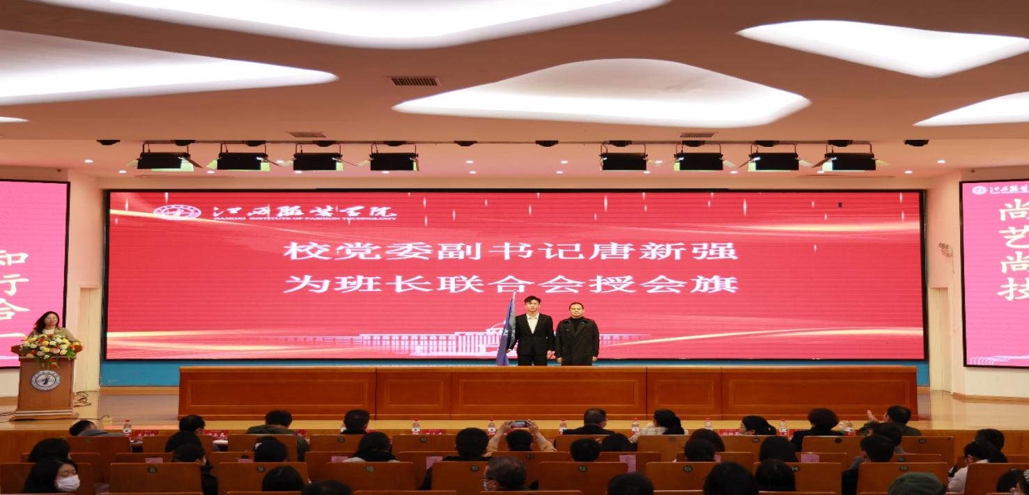 随后,校党委副书记唐新强为班长联合会授会旗。