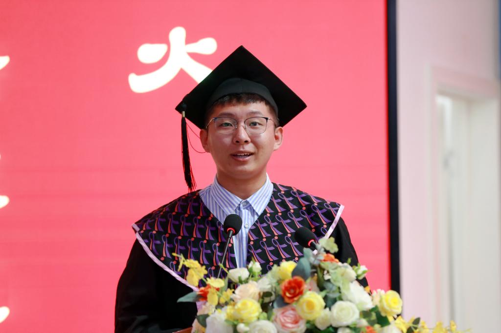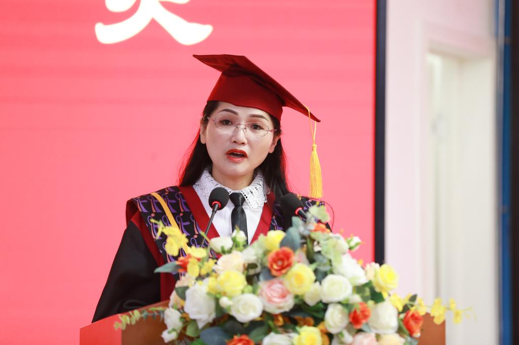 服装设计学院院长闵悦作为教师代表发言,表达了依依惜别之意和浓浓不舍之情;时尚传媒学院2022届播音主持专业王幸俊同学作为毕业生代表发言,表达了对母校和老师的感恩之情。