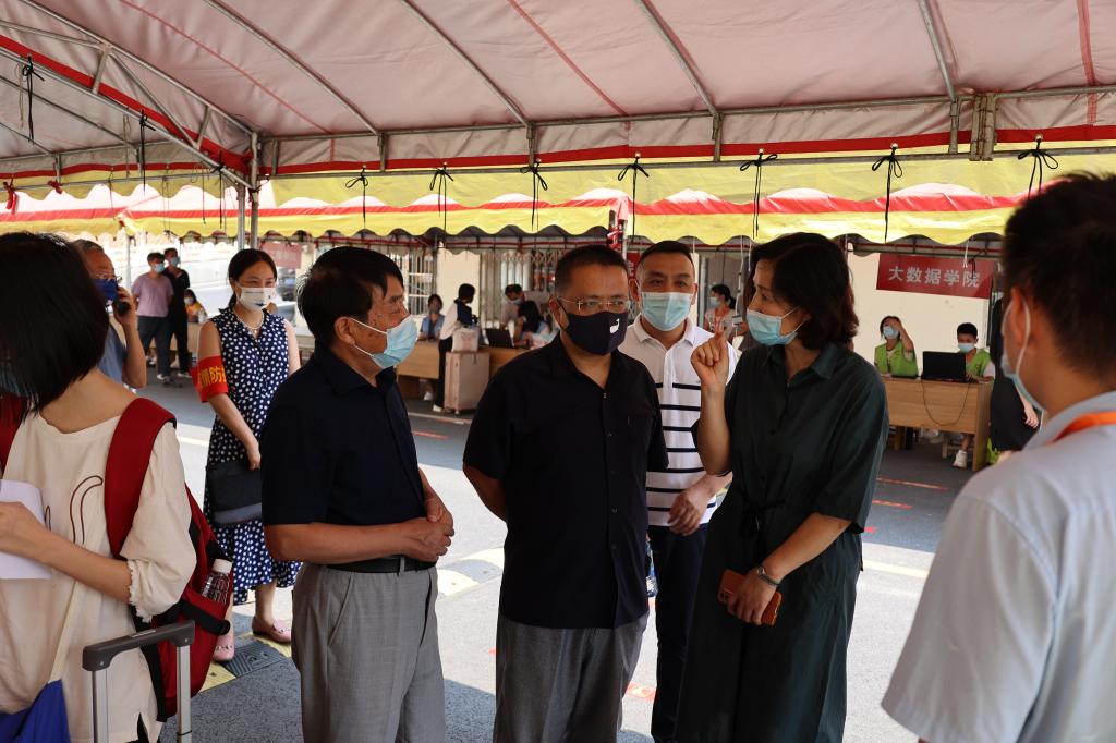 疫情态势严峻,为保证新生安全入校,严格落实疫情防控要求成为了此次迎新工作的重要内容之一。9月10日上午10时,理事长涂顺强、校长薛家宝、副理事长涂燕萍等校领导巡视了校大门、五号门、思贤楼以及罗马柱长廊迎新现场,了解迎新工作具体情况。在迎新现场,校领导一行着重了解新生入校防疫工作情况,对现场工作进行部署,同时慰问迎新志愿者与工作人员。在各学院迎新点,校领导详细了解新生报道工作进展及具体情况。并提出完善意见,给新生提供更贴心的服务,解决新生的问题及困惑,让新生感受到学校的关怀。
