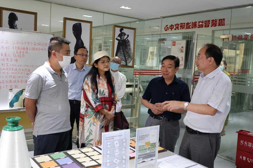 新闻中心讯(图/文 万强) 9月27日下午,江西省科技厅二级巡视员曹春阳一行四人来我校调研指导工作,我校校长薛家宝、副校长陈东生陪同调研,科技产业处、校企合作办公室、服装设计学院等相关负责同志参加此次调研。