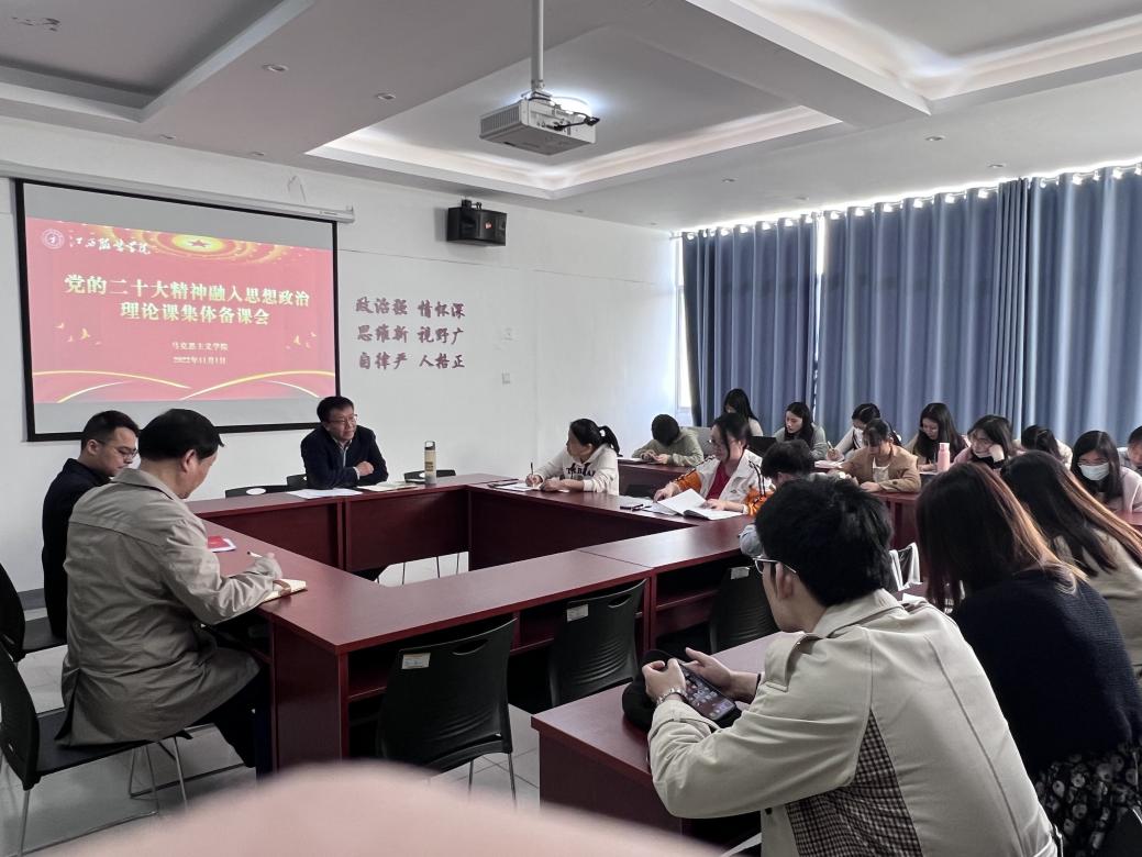 2022年9月起,江西服装学院马克思主义学院制定完善思想政治理论课教师课程集体备课制度,坚持以课程为单位由课程组组长牵头开展每周集体备课会,本学期先后围绕“党的二十大精神”“全国两会精神”以及“习近平新时代中国特色社会主义思想概论”课程专题开展集体备课会。