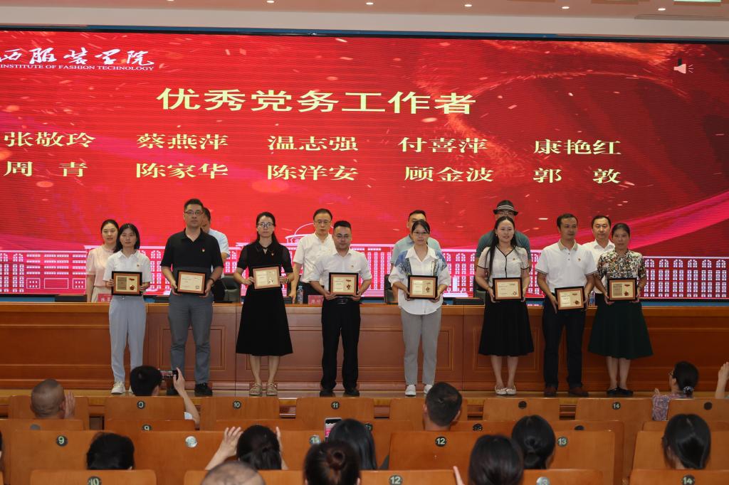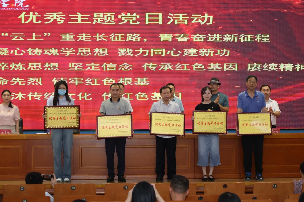 与会校领导分别向先进基层党组织、优秀党务工作者、优秀共产党员和优秀“主题党日”活动颁发荣誉证书并合影留念。