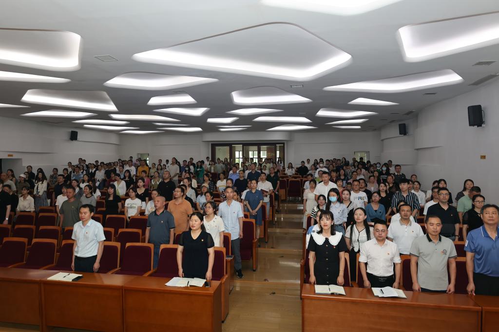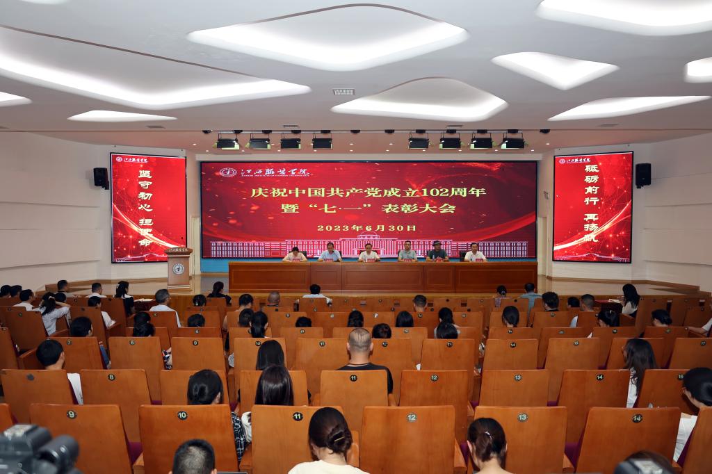 新闻中心讯(图/文 万强)七月的党旗冉冉升起,在中国共产党第102个生日来临之际,为表彰先进,激励广大党员践行新担当、展现新作为,6月30日下午,我校庆祝中国共产党成立102周年暨“七一”表彰大会在思贤楼报告厅隆重召开。党委书记陈付龙出席会议并讲话,学校党委委员、全体教职工党员出席大会,大会由党委副书记唐新强主持。