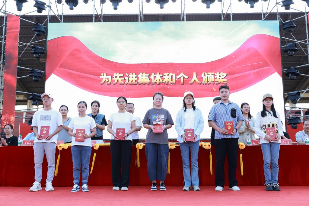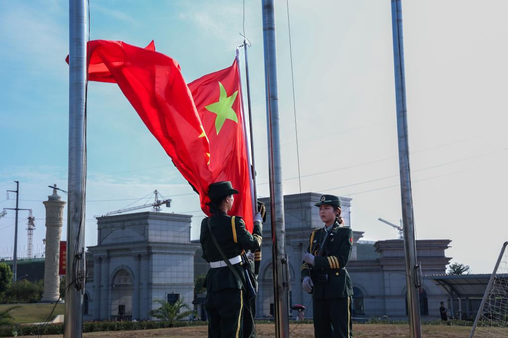 大会在庄严的国歌中拉开序幕,护旗手振臂一挥,鲜艳的五星红旗冉冉升起,迎风飘扬。