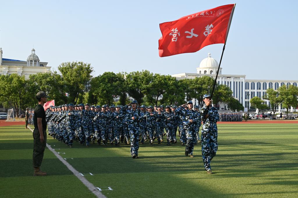 汇演总指挥教官整理好队伍后,面向主席台报告,学校领导指示:“按计划进行!”随着教官一声令下,现场气氛瞬间点燃。2024级参训新生依次进行分列式队列、擒敌拳、刺杀操、匕首操军事项目表演。