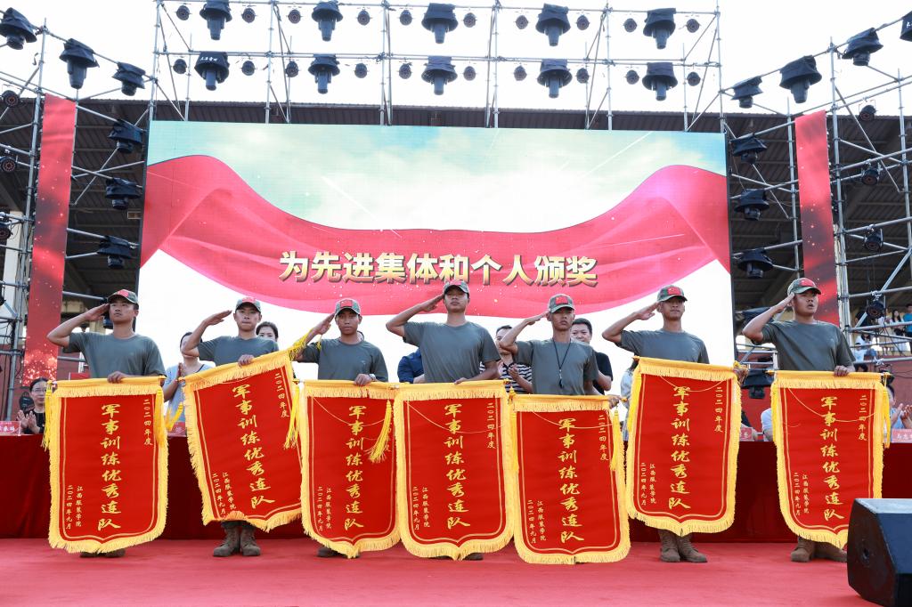 新闻中心讯(文/ 樊翔 图片/ 王景思 黄梓翔 李振东 肖武露 钟宏鹏 陈梦蕊 申宇晨 廖鑫 应静宜)9月25日下午,江西服装学院2024年学生军训总结表彰大会在田径场举行。校党委副书记唐新强出席大会,党委宣传部、学工处、教务处、团委、武装部等部门负责人、各学院党委(副)书记、学工办主任、新生辅导员、2024级全体新生参加了大会。大会由人民武装部部长鲍鹏主持。