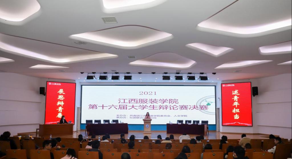 在第十六届江西服装学院大学生辩论赛中,来自各二级学院的7支辩论队和一支辩论社辩论队在长达近三个月的比赛中共同经历了7轮的比赛。最终,人文学院与商学院、服装设计学院与辩论社团队分别展开了冠亚、季殿之争。