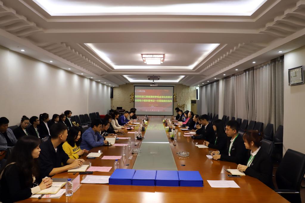 新闻中心讯:为贯彻落实习近平总书记致全国学联二十七大的贺信与党中央致辞精神,持续深化学联学生会组织改革创新。2020年11月19日上午9点,共青团江西省委高校学生会深化改革评估验收工作小组成员江西旅游商贸职业学院团委书记张蕾一行到我校开展学生会改革评估验收工作。校领导唐新强、党委学工部(处)部(处)长胡伟、校团委副书记孟安然、办公室副主任况亚萍,各二级学院分团委书记、校团委老师,及校学生会执行主席团成员于行政楼二楼报告厅参加“江西服装学院深化学生会改革评估验收工作评估汇报座谈会”。本次会议由校团委孟书记主持。