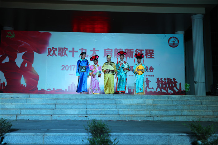 服装报讯(记者/廖智力 摄影/张柯邓 张蔷薇)9月12日晚,我校在主教学楼A座大厅前举行了“欢歌十九大 启航新征程”2017级新生军训联欢晚会。同学们在艰苦的军训之余排练、合成,为大家奉献了一台让人目不暇接、美妙绝伦的精彩盛宴。校党委副书记高建国、学工处处长张建荣、校团委书记朱红,全体班主任、教官以及2017级全体新生参加了晚会。