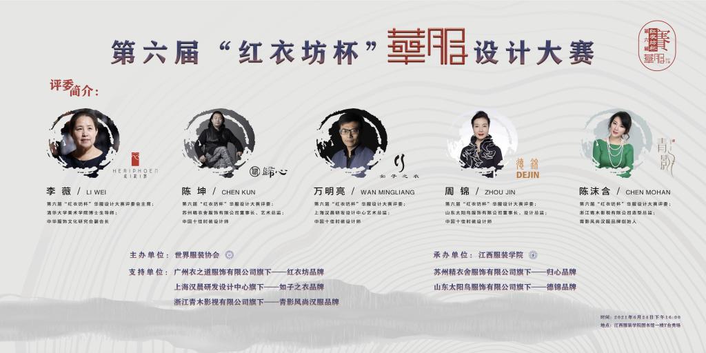 华服设计大赛自2013年诞生至今,九年间,“红衣坊杯”华服设计大赛已经成长为学校里专业赛事较有影响力的赛事,推动学校两个国家级一流专业建设向前平稳迈进,新征程在呼唤,今年是中国共产党建党100周年,又是江西服装学院建校30周年,这也让2021年的“红衣坊杯”华服设计大赛更加具有不平凡的意义。本届大赛与以往相比呈现了三个变化:一是为了让今年的作品更加贴近市场,大赛邀请到了五家有较大市场影响力的华服企业,与初评入围的选手进行配队组合。选手们的设计成衣作品不仅需要符合当季流行趋势,还需按照各自配队的华服品牌要求,设计制作出符合市场批量生产及销售的样衣。各企业设计师全程参与指导选手的成衣制作。二是根据比赛宗旨,组委会邀请的五位中四位来自企业,一位来自教育界。五位重量级大师坐镇,为大赛带来市场化前沿的设计理念和专业的指导意见,助力大赛更加多元包容,发掘有才华的设计师,真正成为一个百花绽放的舞台。三是本届大赛在奖项设计上独具新意,只设置“十佳新秀奖”,比赛中每位入围选手都需要提交一份设计报告,进行面对面的评委答辩,评委们同时从成衣效果、市场粘合度、创意创新、面料运用等多方面进行评审、打分,最终确定十佳名单,有意识地引导年轻设计师注重工艺制造、时尚潜力、服饰搭配的能力培养。